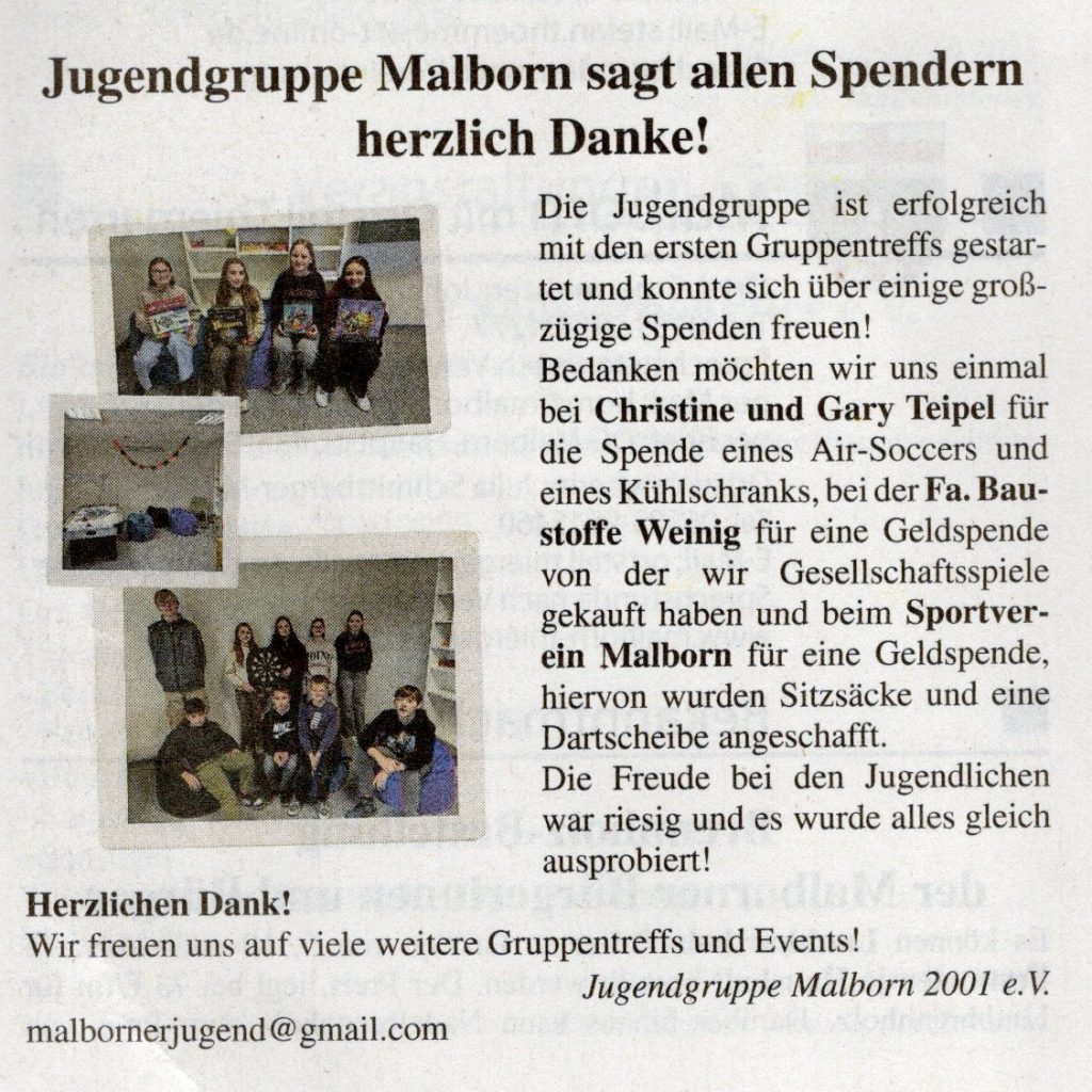 Liebe Mitglieder des Sportvereins Malborn, die Sportfreunde Malborn bieten für interessierte Mitglieder des Sportvereins einen 1. Hilfe-Kurs für Seniorinnen und Senioren an. Dieser Erste-Hilfe-Lehrgang vermittelt die wichtigsten Regeln in Erster